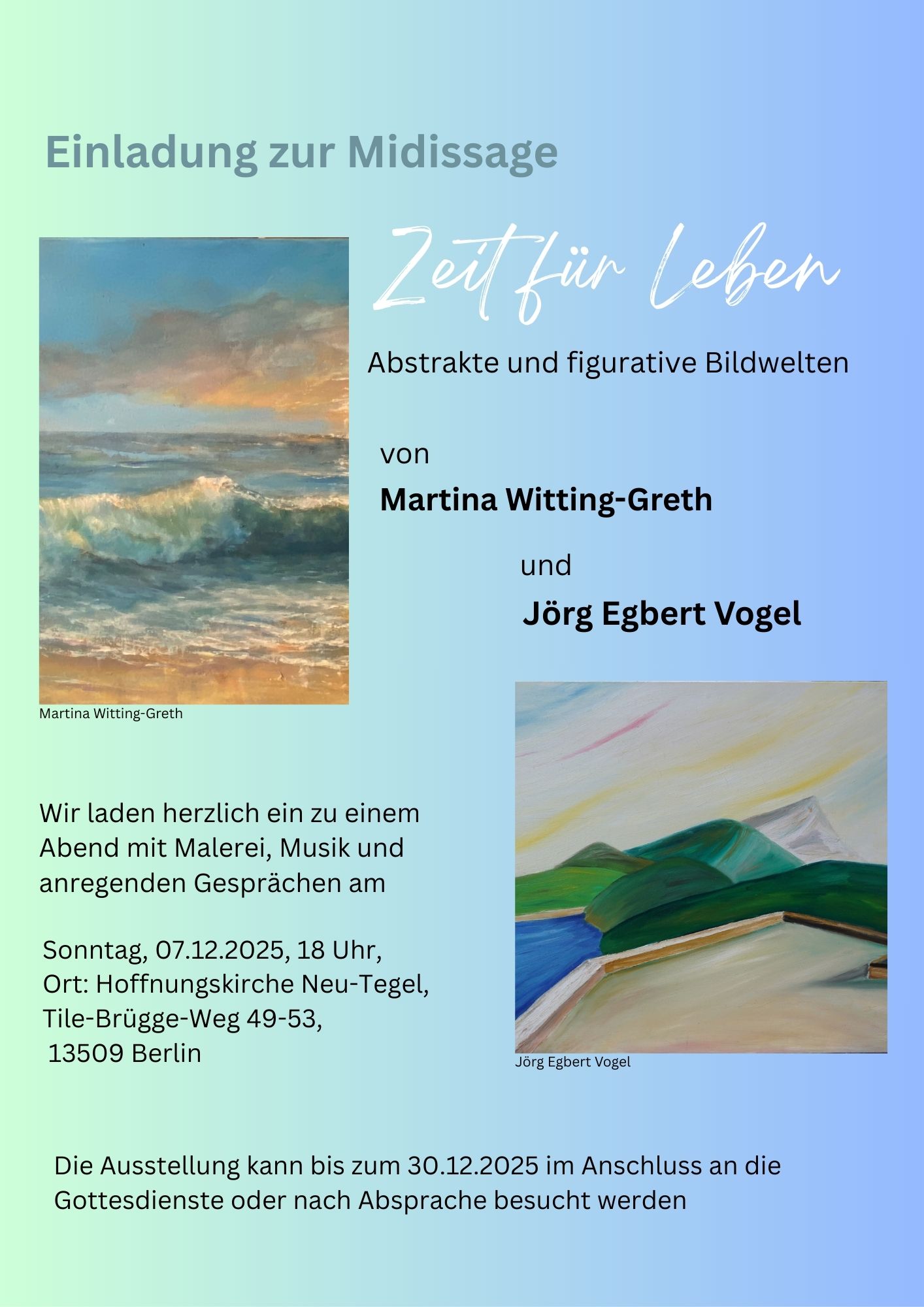 Krankheitsbedingt müssen wir den Midissage-Termin leider absagen. Stattdessen laden wir euch jetzt herzlich ein zu unserer Finissage am 27.12.20251 Gleicher Ort, gleiche Uhrzeit… wir freuen uns auf euch!